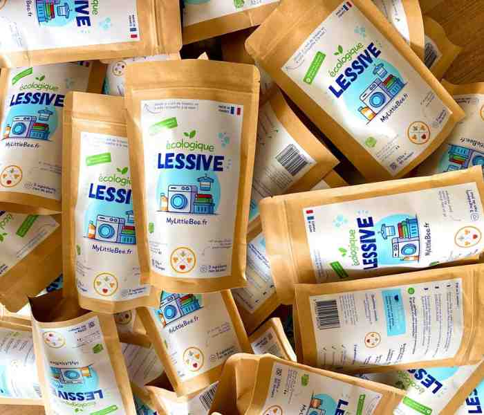L'emballage de la lessive est élaboré à partir de matériaux recyclables, contribuant ainsi à la réduction des déchets plastiques. De plus, l'utilisation de matériaux légers réduit l'empreinte carbone lors du transport. ♻️